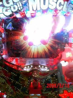 筋肉マンに105回転で肉後16回転ヤメの台があったので、これに決めた。