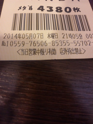 5スロ 投資 2000円 回収 4380枚(14000円)